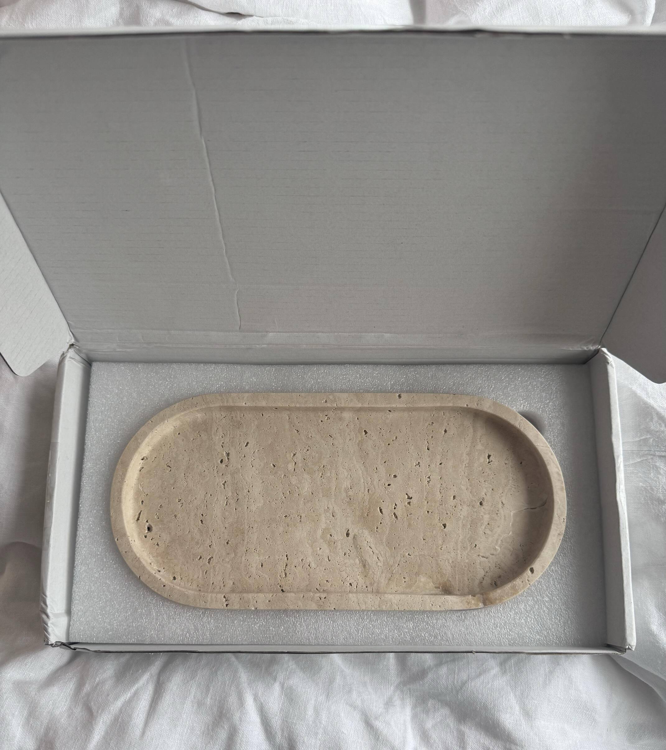 I’m absolutely in love with this tray! It’s such a beautiful and functional piece that has quickly become a favorite in my home. The natural variations in the stone give it a unique, earthy charm, and the subtle tones of beige and light brown complement my decor beautifully.